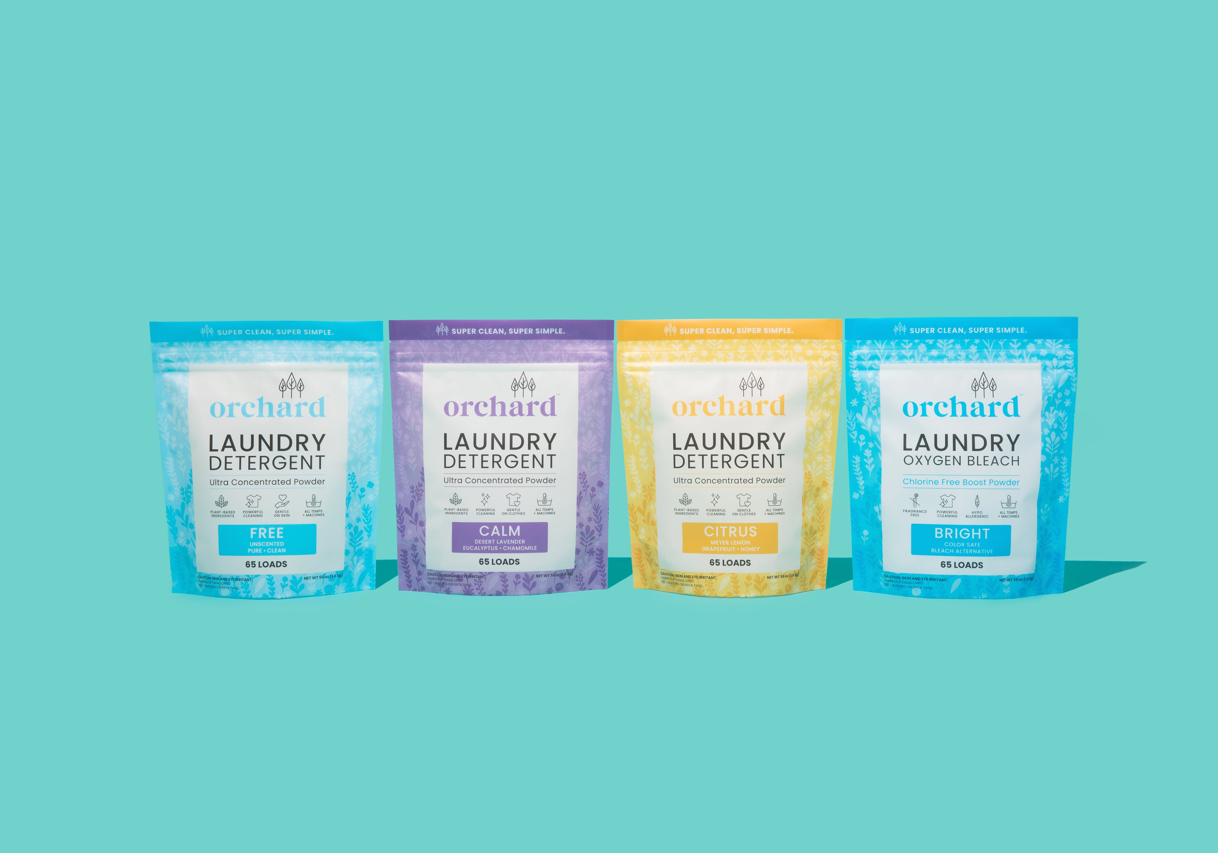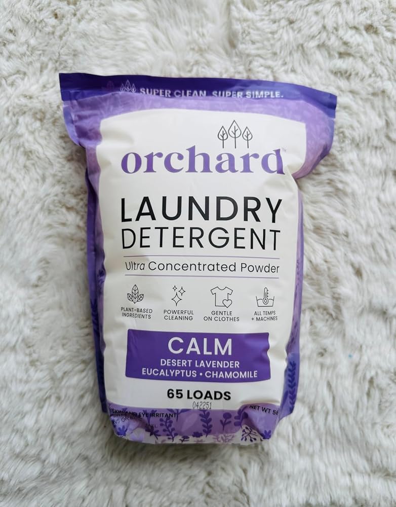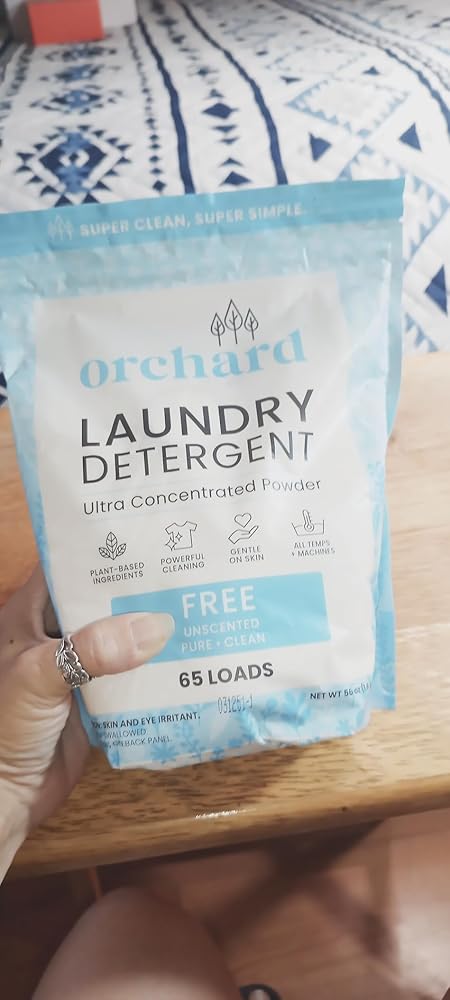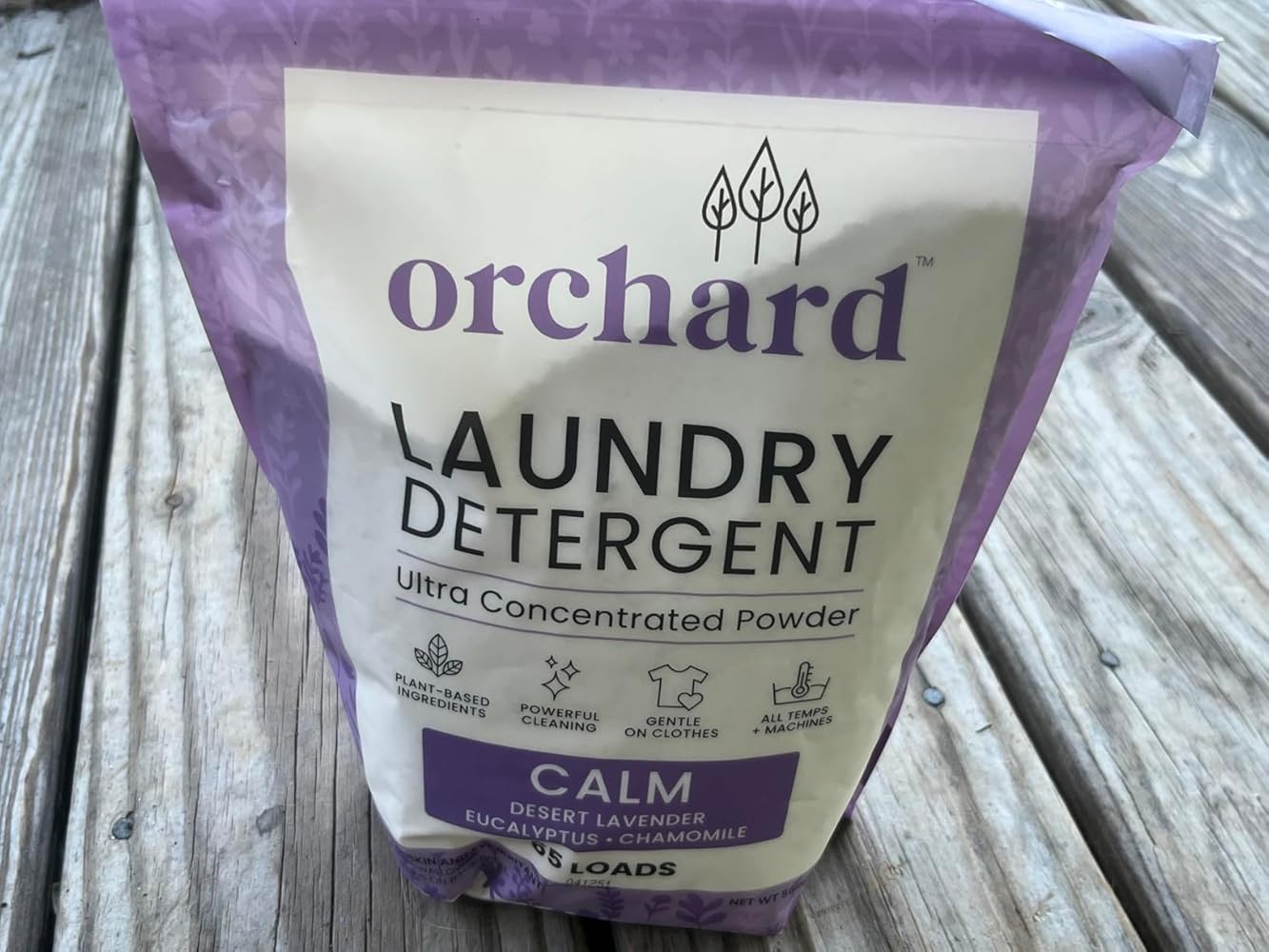 Orchard Laundry Detergent comes in an ultraconcentrated powder and seems to be effective at cleaning dirty clothes, towels, and bedding. One small tablespoon (which is included) is enough to clean even moderately soiled clothes and overall the laundry appears to come out clean and fresh, although the detergent is unscented. The fragrance-free powder is great for sensitive skin and its hypoallergenic and plant-based nature makes it a great choice for washing kids clothes. The powder came in some larger clumps in the bag, but the detergent seems to break up easily and there was no residue in the washing machine after finishing the wash cycle. The price point is a little high, but overall this product seems to perform as advertised.